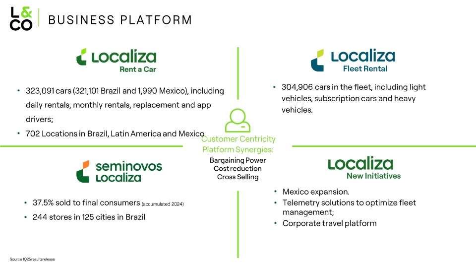 - Company reports and presentations: Localiza IR – Q2 2025 Earnings Release and Presentation , Corporate Profile , Sustainability Report , Dividend History .